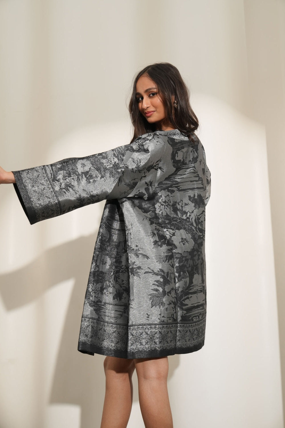 Denim Blue Floral Design Brocade Kimono Set Sale
