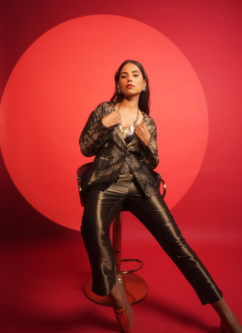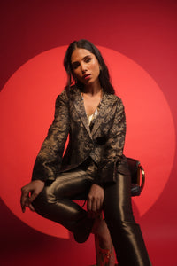 FRENCH ORNAMENTAL BLACK SHORT BROCADE JACKET