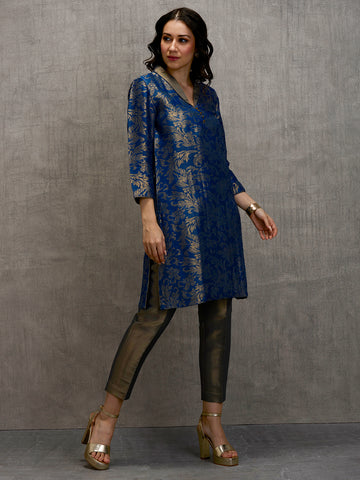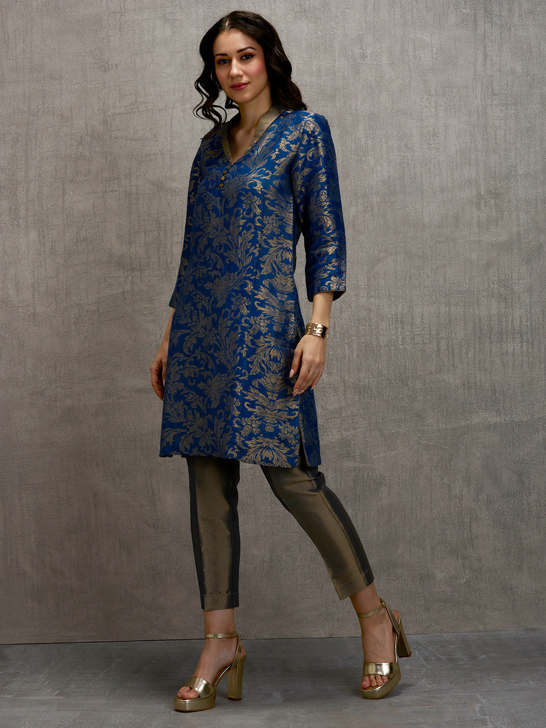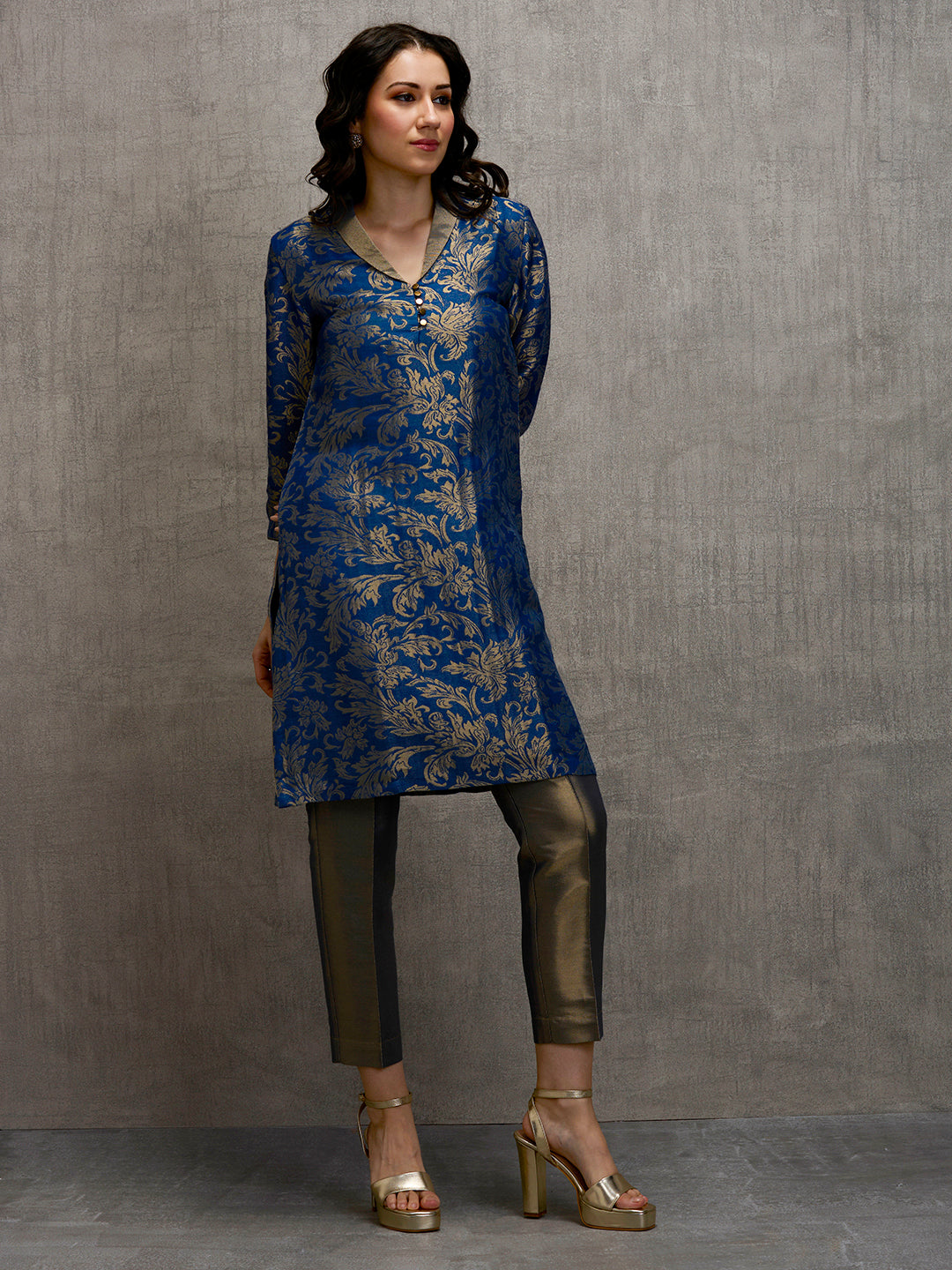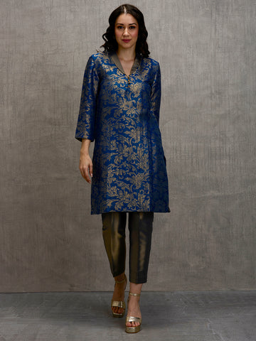 Blue swirl design brocade kurta set ideal for refined ethnic and festive occasions.