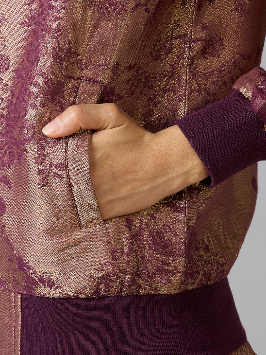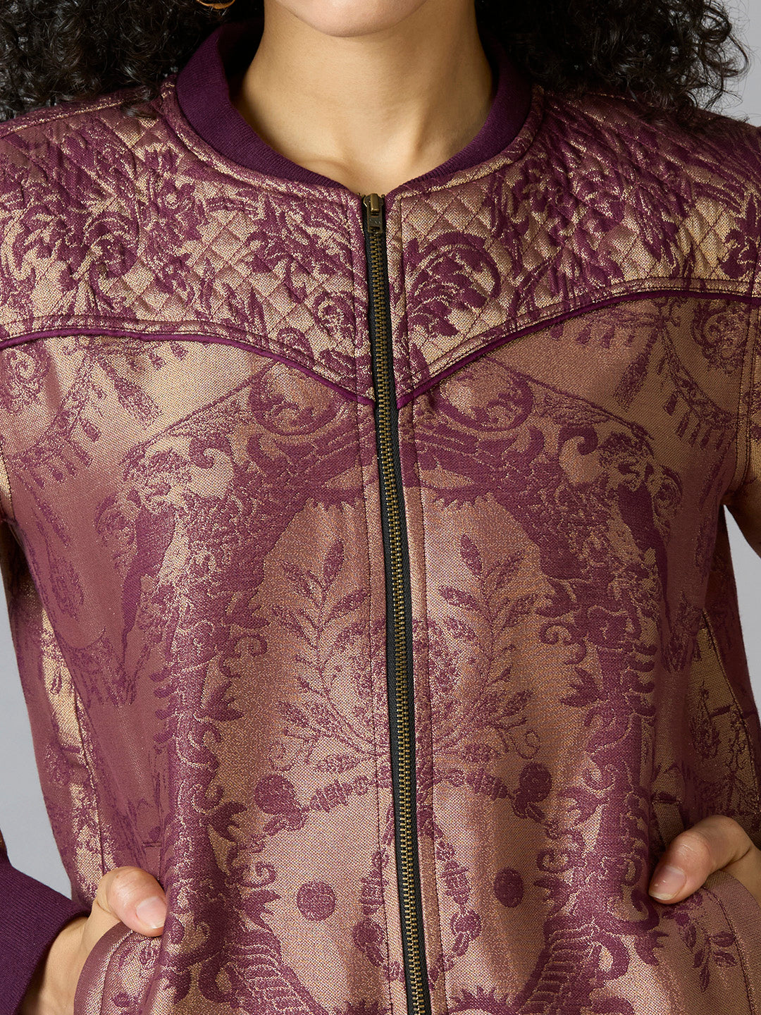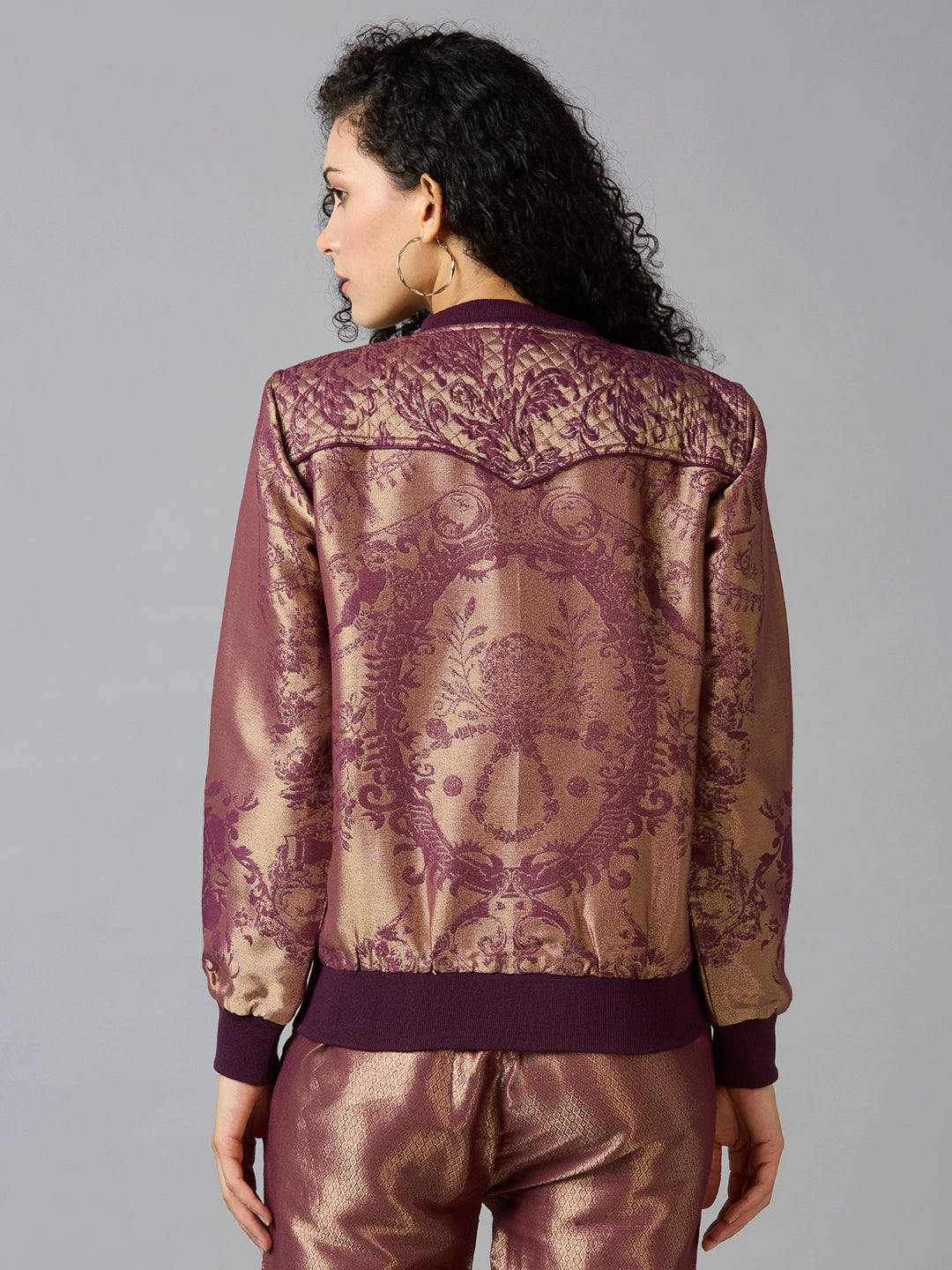 Wine Ornamental Design Brocade Bomber Jacket - XS-S