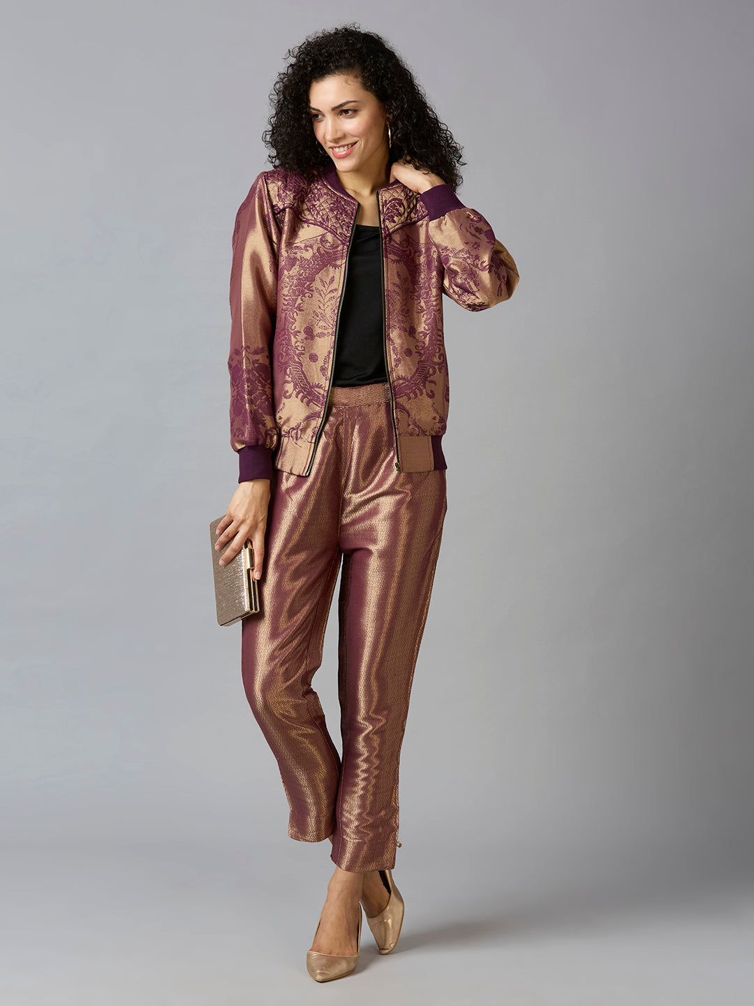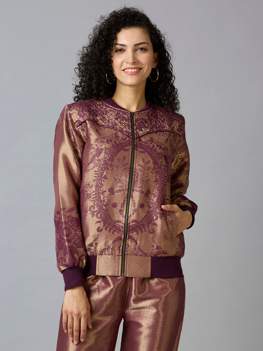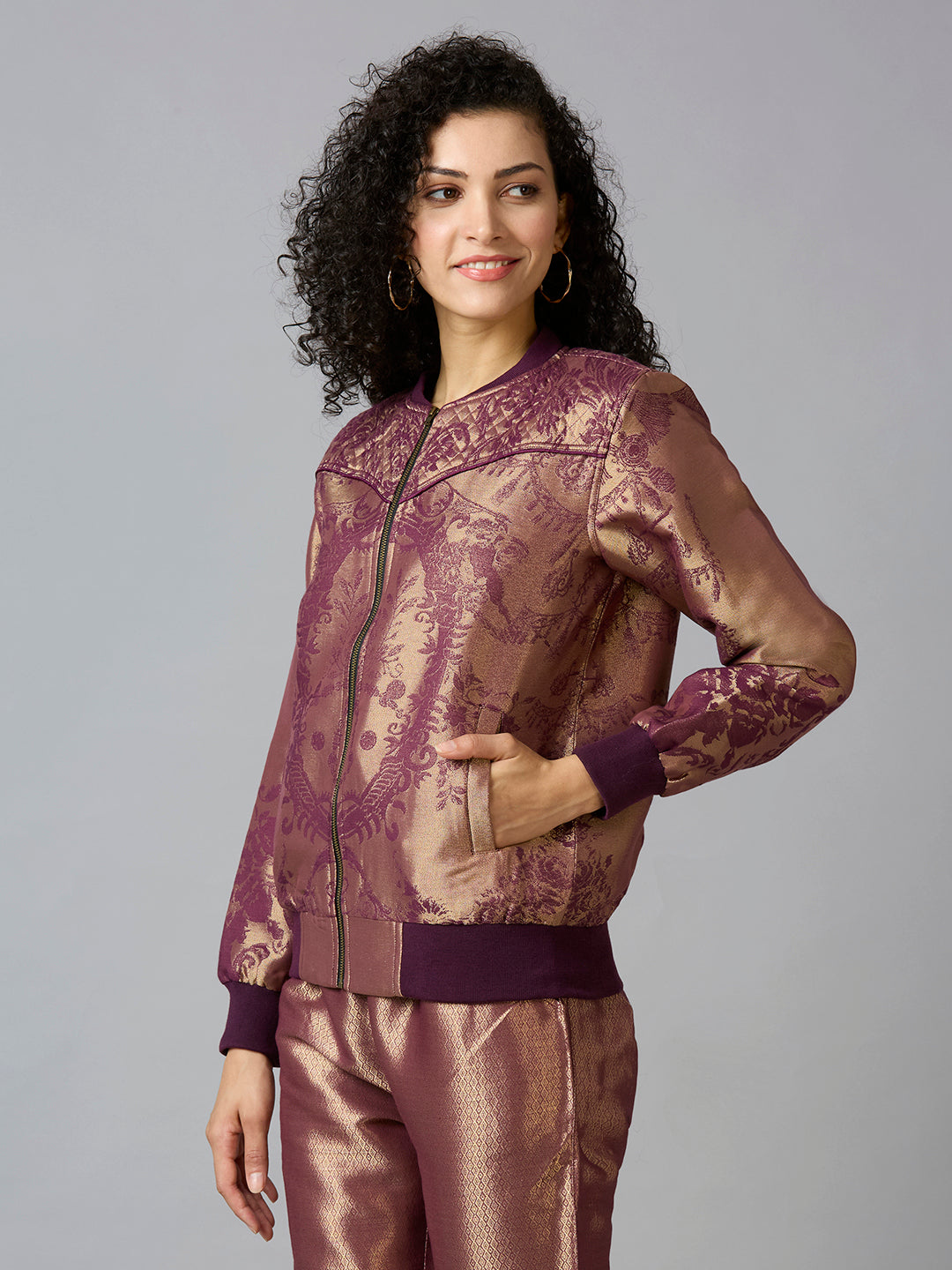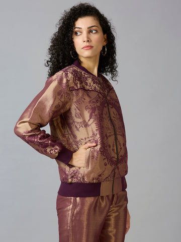 Wine Ornamental Design Brocade Bomber Jacket - XS-S