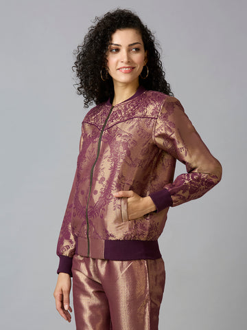 Wine Ornamental Design Brocade Bomber Jacket Sale