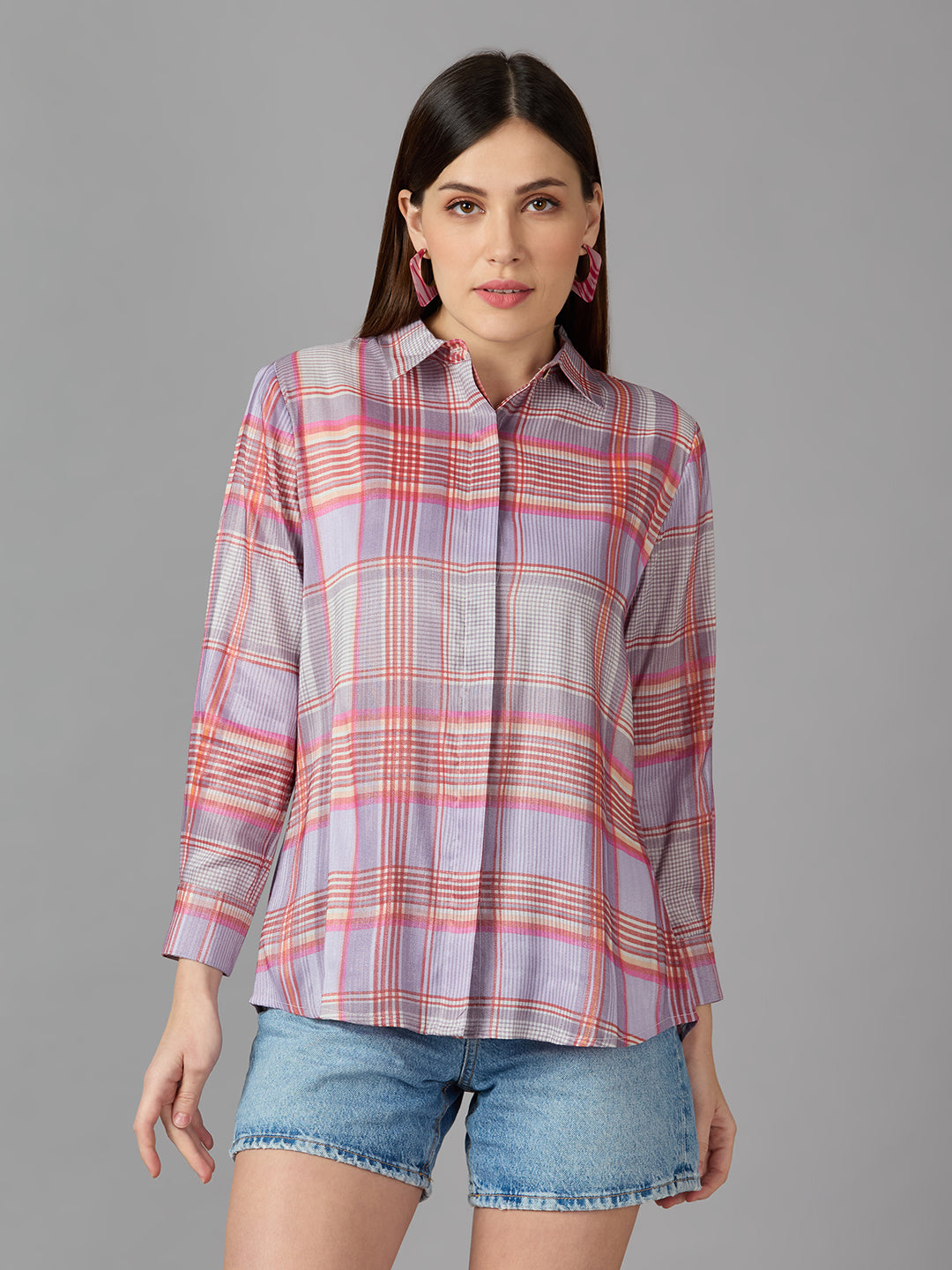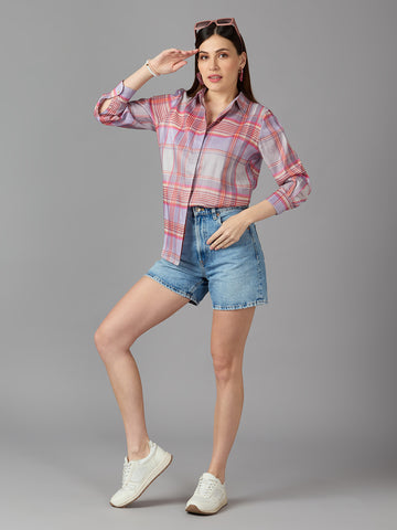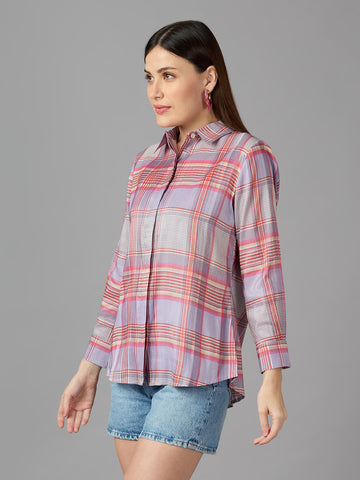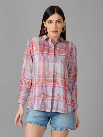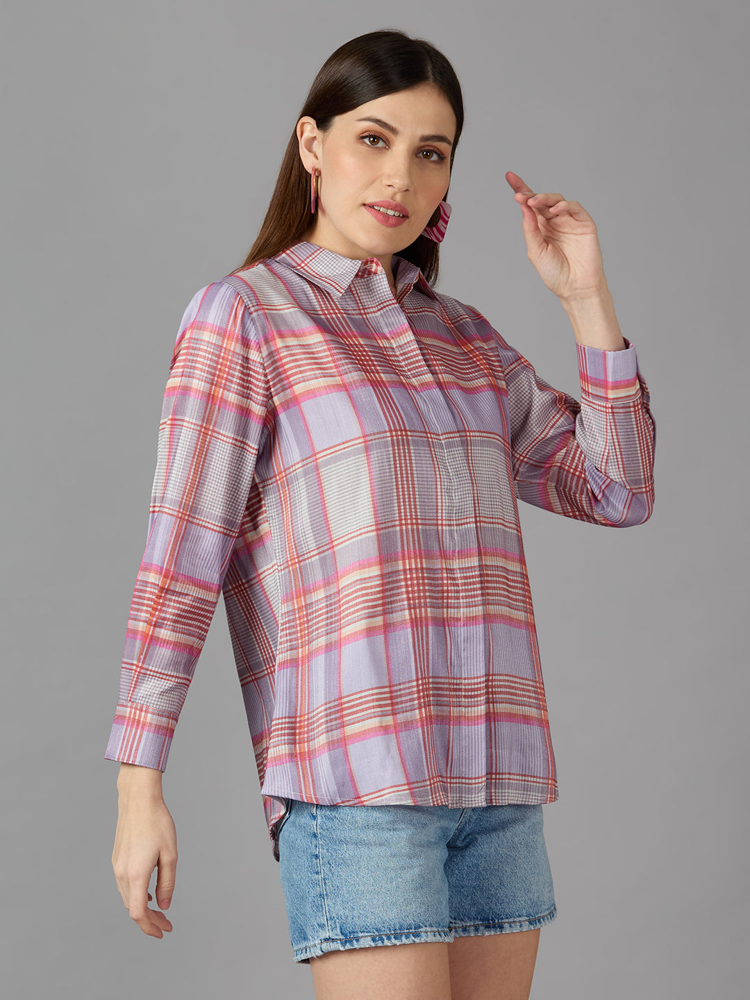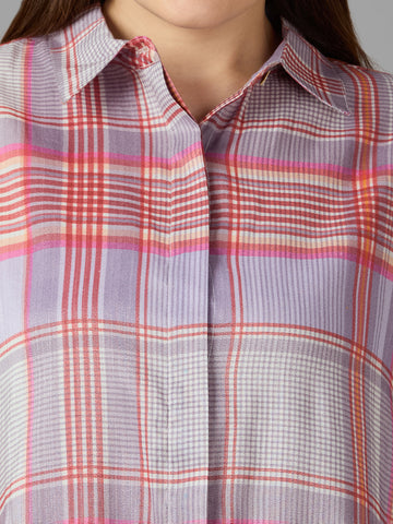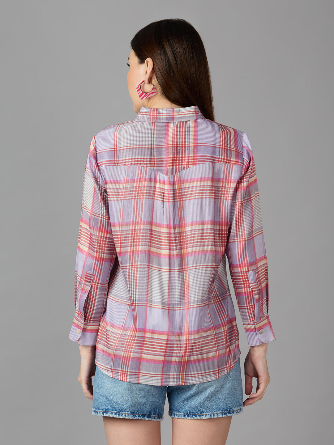 Pink Checks Printed Metallic Button Down Shirt Sale